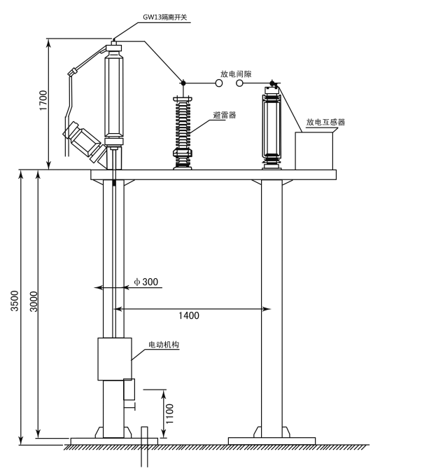 2、固定操作机构的槽钢支架和由操作机构到隔离开关导电杆转轴的钢管,不在本装置的供货范围内。均由安装单位现场制作,长度、尺寸现场确定。